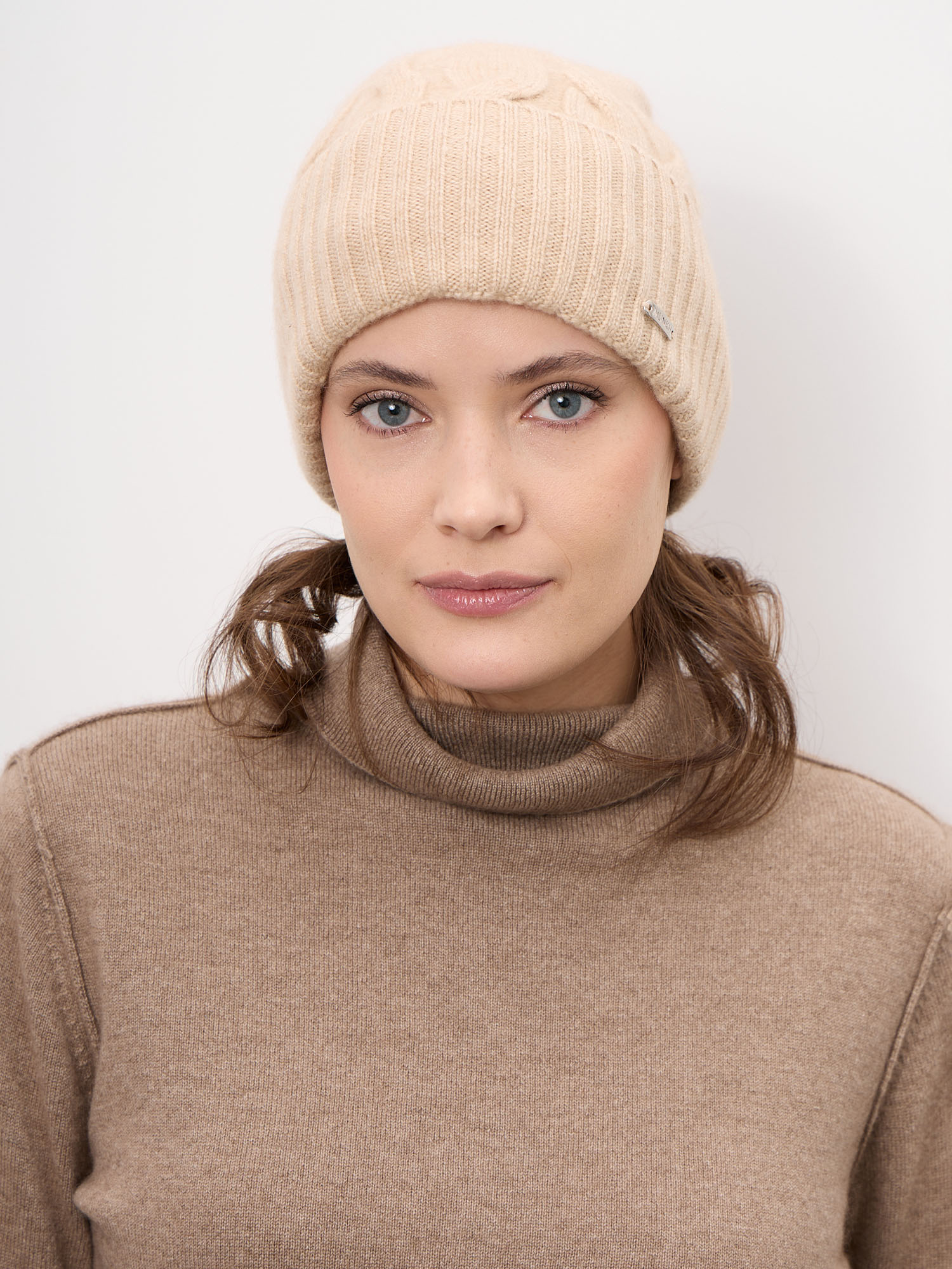 Шапка из кашемира 04343 бежевая
