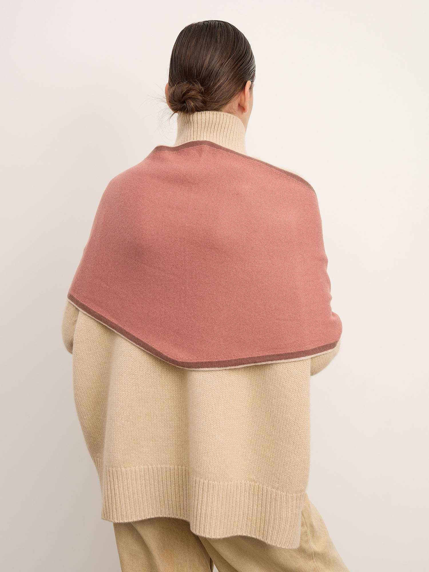 Модель выполнена в современном минималистичном стиле с аккуратной треугольной формой. Чистые линии и отсутствие лишних деталей делают шарф универсальным аксессуаром для разных образов.
