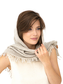 Выбрала эту косынку,как альтернативу шарфу,и,чтобы можно на плечи накинуть под пуховик,или в помещении. Смотрится стильно,не как бабушкин платок. Немного колется, кашемир или пух яка были бы совсем чудесно.Но там и цена другая. Но я люблю хорошую шерсть, мне нравится. Спасибо производителю за современный дизайн и хорошее качество. |