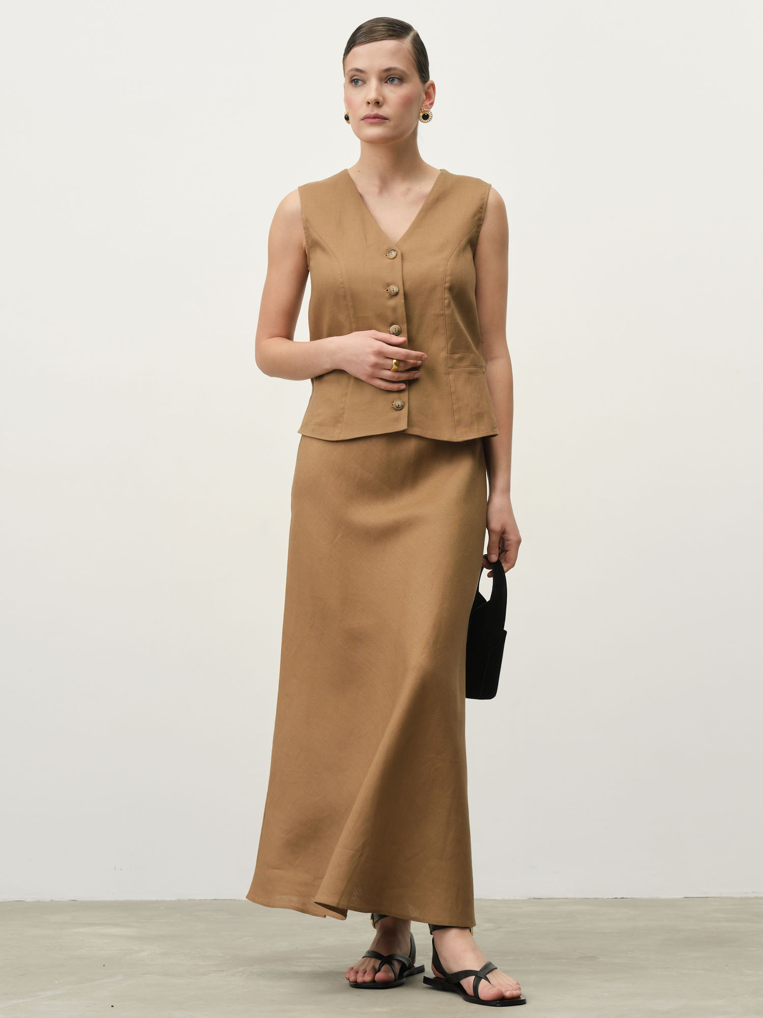 Обновите свой гардероб этой универсальной льняной юбкой цвета кэмел и откройте для себя множество вариантов стильных комбинаций на основе натуральных материалов. Инвестиция в качественные базовые вещи – ключ к созданию гармоничного и практичного гардероба!