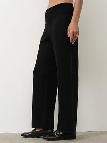 Эластичный пояс обеспечивает комфортную посадку, мягкая трикотажная вязка сохраняет форму изделия. Прямые брючины визуально вытягивают силуэт.
