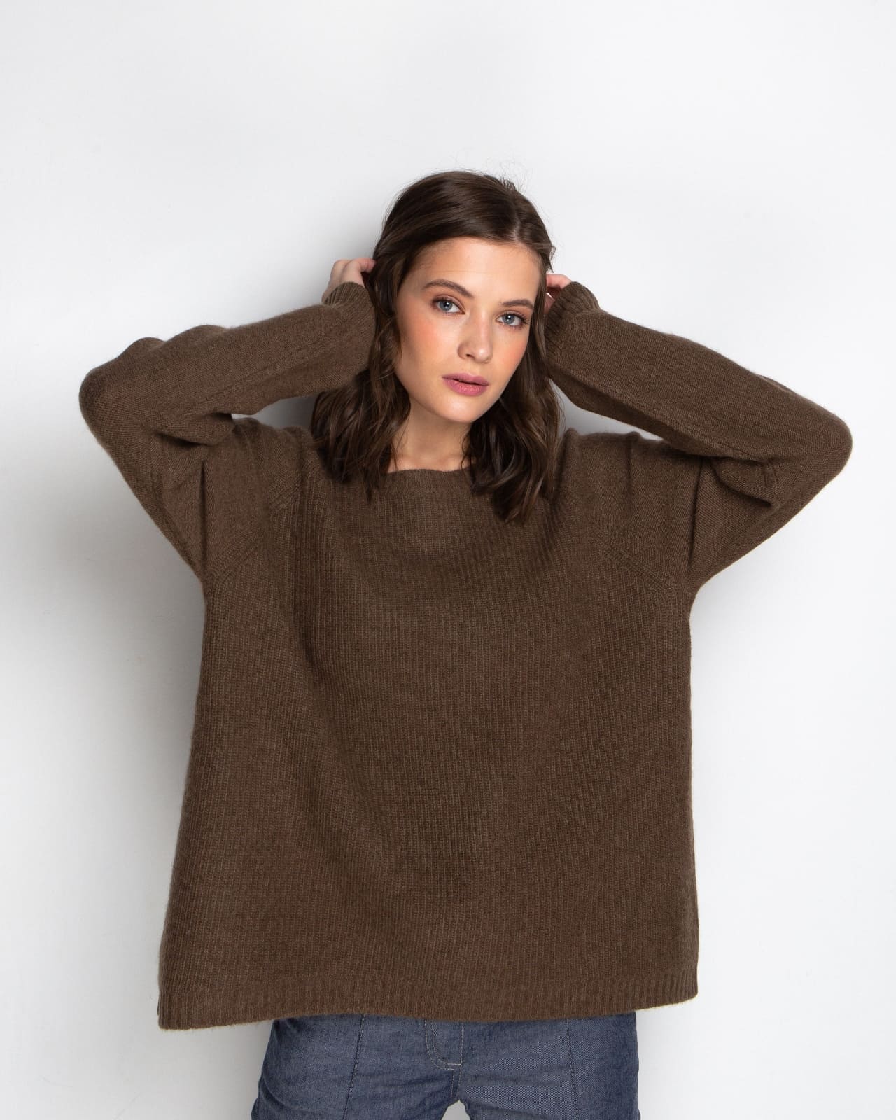 Идеальный джемпер. Очень мягкий и приятный к телу. Уютный и тёплый. Качество отличное. Отенок ближе к серому, не такой коричневый как на фото сайта. На свой 42-44 взяла 44-46 сел хорошо, свободно, как и положено модели оверсайз, Думаю, что и размер меньше тоже бы сел хорошо, но перезаказывать не стала. Надела и снимать не хочется. Спасибо за качество.