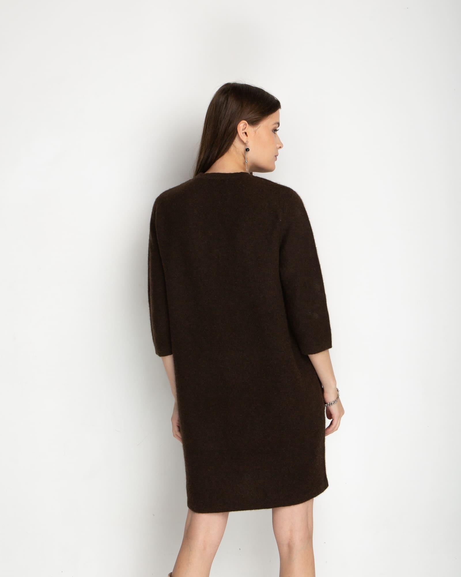 Цвет платья изумительный. Мой рост 165, ношу 44 российский. Взяла размер М. Село великолепно, даже скрывает мелкие недостатки... Пух яка очень мягкий, к телу очень приятный. Напомнил мне итальянский кашемир. |