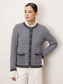 Премиальный кардиган из 100% монгольского кашемира в изысканном сером оттенке. Фактурная вязка и контрастная отделка создают элегантный, современные силуэт. Мягкий, тёплый и гипоаллергенный, он идеально подходит как для офиса, так и для повседневного стиля.